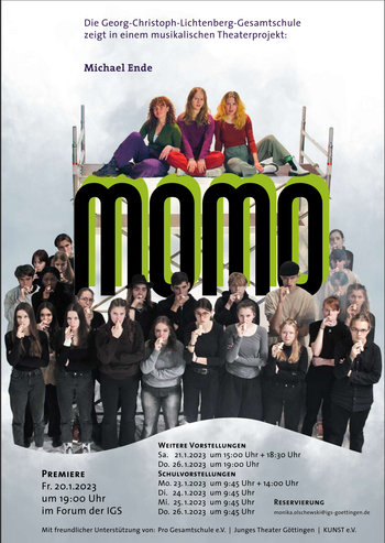 Die Grundlage des Theaterprojektes bildet der philosophische Abenteuerroman „Momo“ von Michael Ende. Bereits im Jahr 1973 entwirft M. Ende eine Zukunftsvision, in der unser Leben von Technisierung, Leistungs- und Geschwindigkeitsrausch beherrscht wird. Vieles davon scheint heute fast Realität geworden zu sein. Aber wer oder was stiehlt eigentlich unsere Zeit? Was für Menschen bringt eine Gesellschaft hervor, die auf der Überholspur rast?