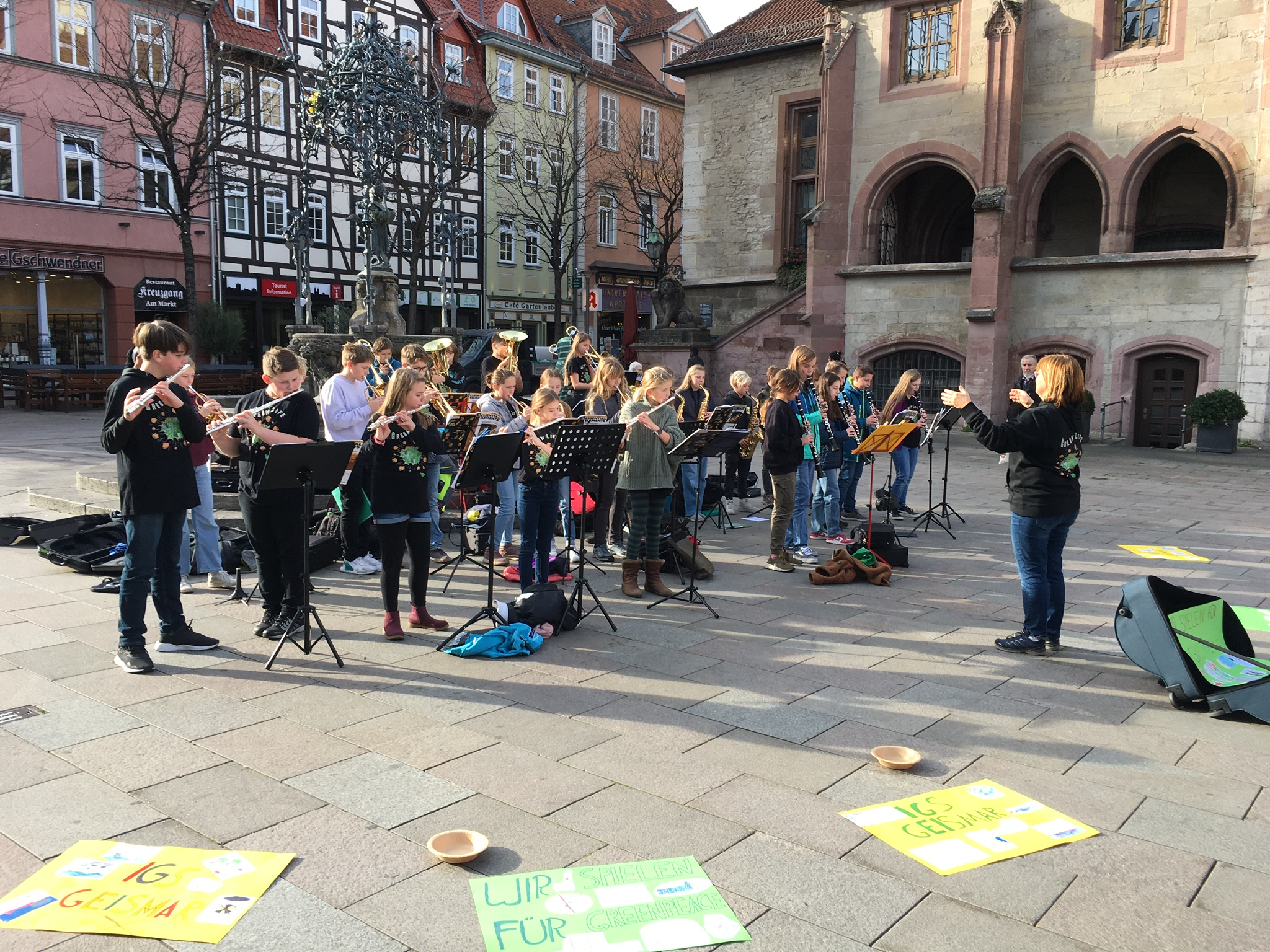 Grün 3: Ohne Pauken, aber mit viel Blech, tönte die grün6 in der Innenstadt. Die erspielten 322,02€ gehen an Greenpeace.